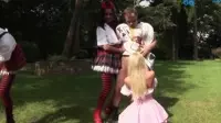 Under a warm sunny day, the group of outdoor bitches gather in a lush, verdant park, donning their sexiest stockings and sultry lingerie.Each one of them, a stunning beauty with voluptuous bodies, curves that beg to be touched, and faces that radiate desire.The scene is set, the anticipation mounting as they eagerly await their next kinky activity.As the girls prepare for playtime, they first indulge in some light and sensual handjobs, rubbing and tugging each other with a fervent passion.Each touch sends shivers down spines and creates a heightened sense of excitement.The moans grow louder and more urgent, signaling a deep yearning for connection.Next, they introduce ribbons into their play, tying them tightly around their sensitive nipples, labia, and asses.As the soft material bites into their skin, the bitches writhe in pleasure, each feeling a new surge of stimulation course through their bodies.They explore various techniques of jerking, tugging and masturbating, the cries of delight echoing throughout the park.As their play progresses, boobs and asses are proudly displayed in the bright sunlight, offering a captivating visual for any onlookers.The girls continue to indulge in the wicked delights, each scene more provocative than the last, including oral activities involving their clit, pussies, and asses - leaving nothing untouched or unexplored.Soon, the intensity reaches a climax, culminating in a frenzied group fuckfest where each girl takes turns fucking and being fucked in various positions.The sounds of bodies slapping together, moans reverberating off the trees, and orgasms being reached multiple times due to the intensity of the activities paint a vivid picture of ultimate sexual pleasure.The sun begins to set as the group exhausts themselves with their play, each beautiful woman collapsing in satisfaction, their bodies glistening with perspiration and fluids.As the last rays of sunlight disappear behind the trees, they take one last look at the park and smile, knowing that they've created a day filled with unforgettable kinky activities and moments.This video captures every passionate detail, from the intense facial expressions to the orgasms reached due to the hard, dominating nature of each role.This outdoor group of sexually adventurous women take on various roles dominants who command obedience, and submissives who crave intense stimulation.Each scene is filled with a sensual and explicit passion that only adds to the beauty of their kinky adventure.